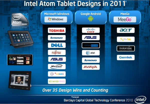 All the 35 tablets won’t be running on Android, but we are expecting a sizable number of them on Google OS. The Android tablets are said to be having Moorestown at the core, while Oak Trail will come in Windows tablets.