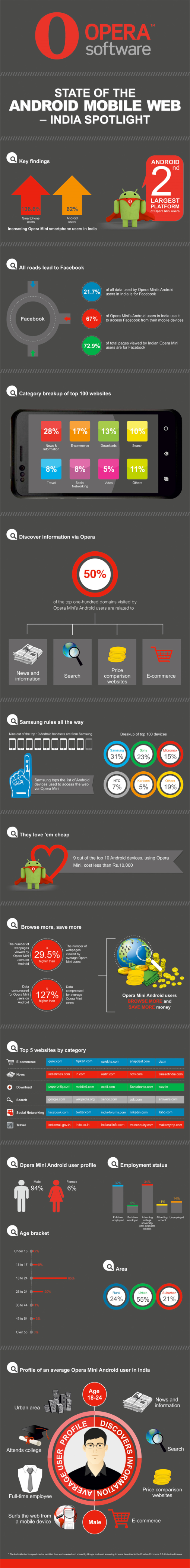 - Almost 50% of the top hundred domains visited by Opera Mini’s Android users are related to news and information, search, price comparison and e-commerce.