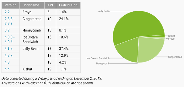 As these are the last Android platform numbers to be released this year, 2014 will show if Google is able to succeed with KitKat in removing smartphone makers’ reliance on Gingerbread for ultra-cheap Android devices.