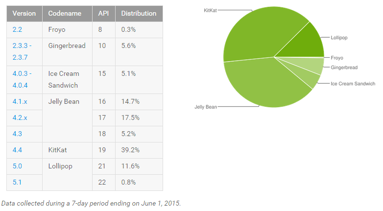 Except Lollipop, all other Android versions continue to lose market share and we expect to see the same until Android M arrives on the scene.