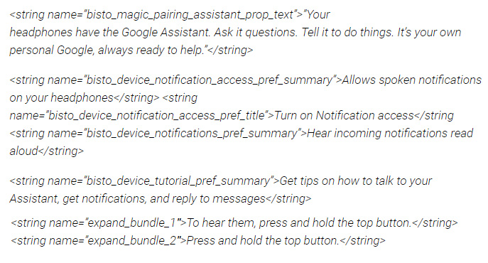 Although we don’t know any specifics about the Bisto headphones, the code strings (screenshots below) reveal that users will be able to ask questions, tell the headphones to perform tasks, get voice notifications, reply to text messages and more on the go.